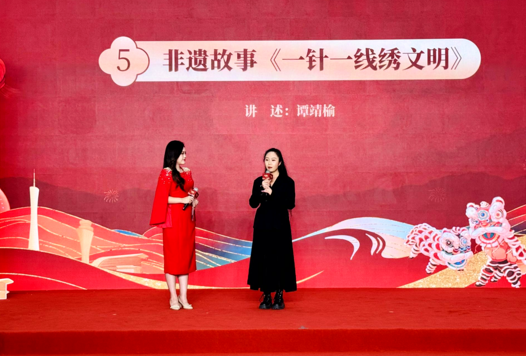 活动在灵动欢腾的狮舞《醒狮贺岁》中拉开序幕。广东省精神文明建设主题歌曲《相约文明》以真挚旋律呼唤共建共享;情景讲述《文明广州十二时辰》通过十二个日常场景,勾勒“人人都是文明风景”的城市画卷;创意节目《文明接力》将街舞的律动、蔡李佛拳的刚劲与花式跳绳的活力巧妙融合,在全运吉祥物“喜洋洋”“乐融融”的助阵下,点燃“后全运时代”的青春脉动;广绣传承人谭靖榆登台讲述《一针一线绣文明》,以“流水路”针法诠释广府匠人心中的开放包容与崇德向善,并携手吉祥物“喜洋洋”“乐融融”向观众派发广绣“文明福穗”挂饰,寓意“穗满文明,年年有礼”。